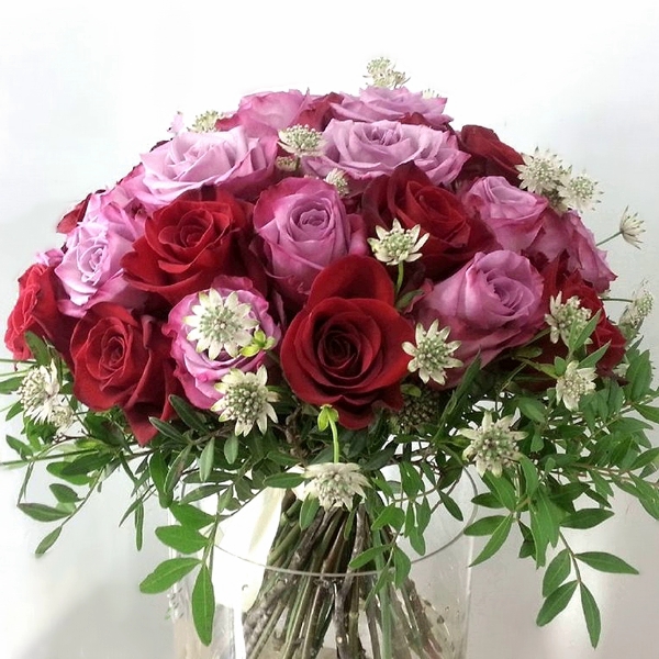 A special lady deserves special flowers! That’s why this bouquet of red, lavender, and hot pink roses is perfect for a special day and a special reason! Order now and send her a surprise today!